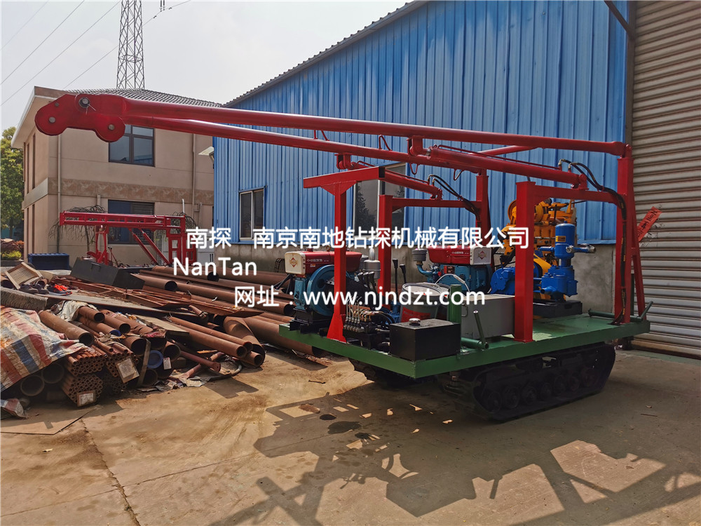 XY-1A-L-02-B-STRZT履帶鉆機(jī)橡膠履帶底盤、動力(柴油機(jī)或電機(jī))XY-1A鉆機(jī)、鉆機(jī)平臺、液壓支撐腿系統(tǒng)、人字形全液壓起落架、泥漿泵共同組裝在一個機(jī)架上。鉆機(jī)泥漿泵一個動力一體底座柴油機(jī)或電機(jī)),橡膠履帶底盤柴油機(jī)或電機(jī))帶動,互不干擾,避免單動力變換負(fù)荷造成磨損影響施工